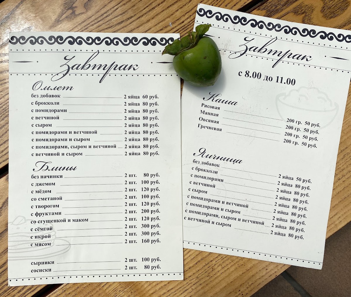 Kafe 'Briz Osetinskiye Pirogi' Menu